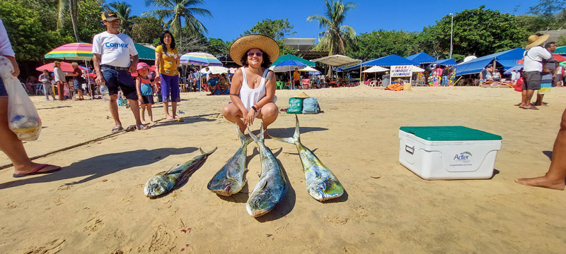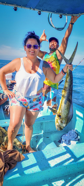 La primera vez que fui a pescar, tuvimos la suerte de traernos seis dorados hermosos y la segunda vez, un pez vela de casi 40 kilos y varios barriletes. En ambas ocasiones, los capitanes nos dijeron que eran buenos días de pesca porque no había luna llena; cuando la hay, los peces salen a buscar su comida de noche pues hay mucha luz, así que, en el día, es difícil pescar algo.