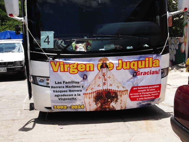 Today, the pilgrims to Juquila mainly come by chartered bus from Oaxaca, Puebla, Tlaxcala, Hidalgo, the State of México, Guerrero, and Mexico City. Typically, the excursion organizer is someone from the community whose only benefit is a free trip. Her neighbors set aside money each week or month, and the organizer charters the bus. Or it might be the bus owner who organizes the trip. In the case of the shoe shiners of Oaxaca, the union arranges the trip with the workers cont ributing every week.