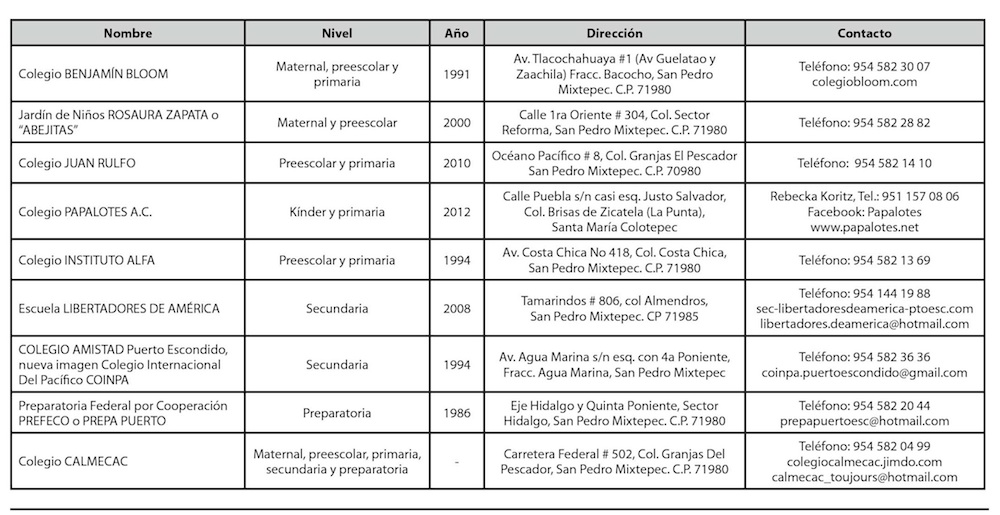 Click here for a list of the private schools in Puerto Escondido.