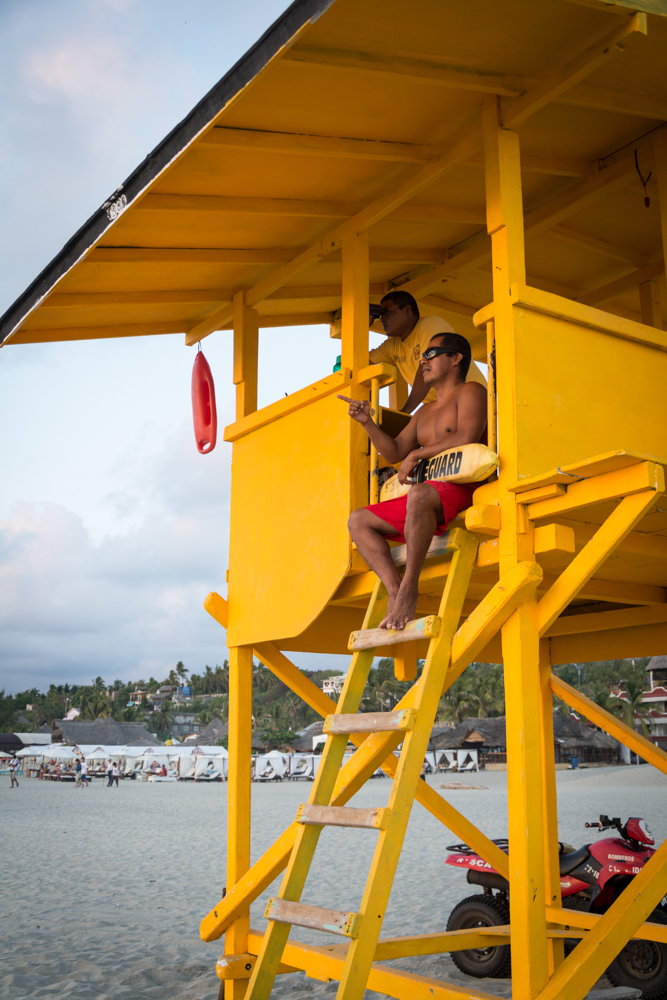 The main lifeguard station is in the middle of Zicatela across the street from the Hotel Ines. Besides Zicatela, there are towers on the beaches of Bacocho, Carrizalillo, Marinero and La Punta. The towers are staffed from 8 a.m. to 7 p.m. However, there is always someone at the Zicatela station to provide emergency assistance.