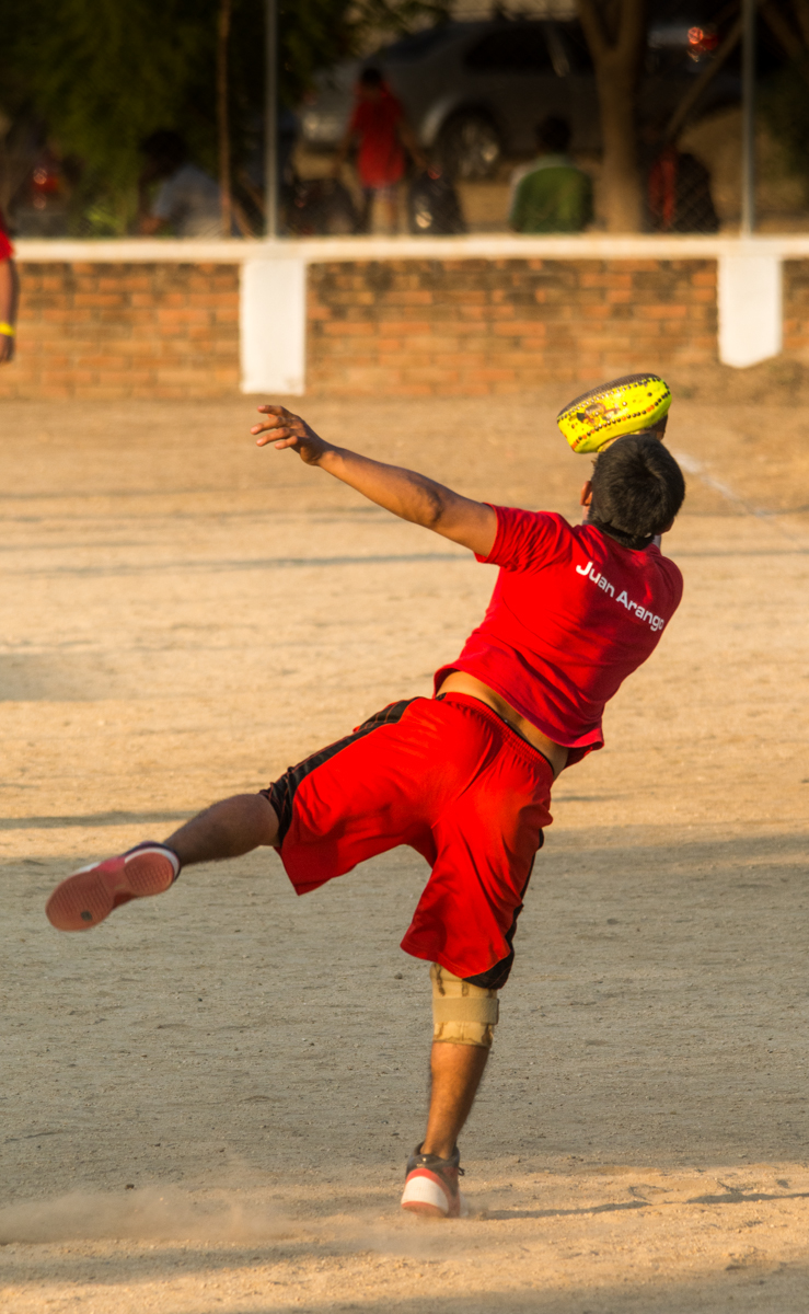 Pelota Mixteca is played by two teams, each with five players on the field. It is not a professional sport. Most teams do not have uniforms. But it requires a lot of practice, agility and strength.