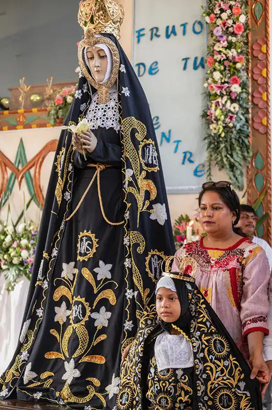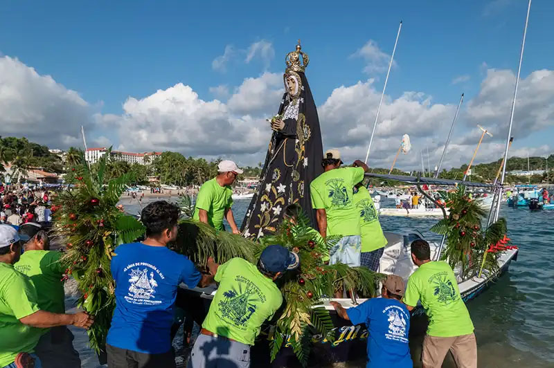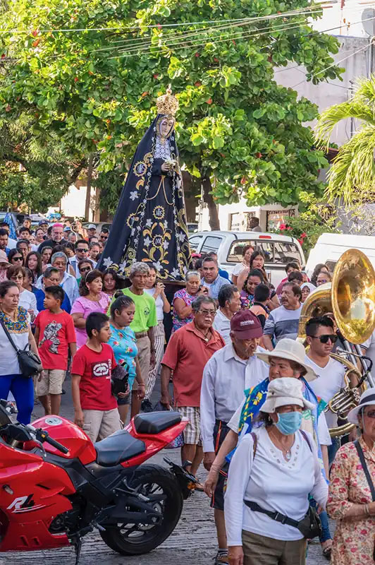 For the past 45 years, on December 18, except during the Covid pandemic, the fishermen of Puerto Escondido have taken the image of the Virgin of Solitude out to sea from her altar in the church of Puerto Escondido. The parish itself was founded in 1973 and is now celebrating its 50th anniversary. The Virgin of Solitude is both the patron saint of Oaxaca and of Puerto Escondido.