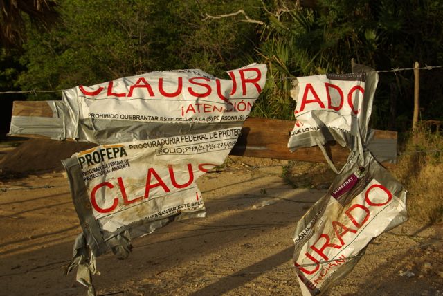 While it is true that the Dept. of the Environment and Natural Resources (SEMARNAT) and the Federal Prosecutor for Environmental Protection (PROFEPA) had intervened by ordering the closure of this project, they have taken no action against the party or parties who violated their seals, even though it is a federal offense to do so.