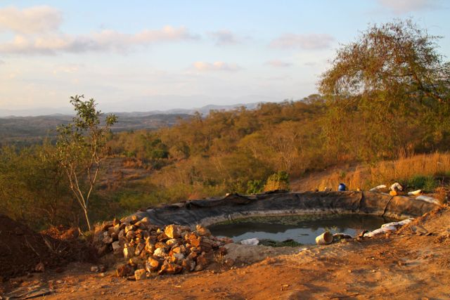Beneath the soil is a layer of bedrock that traps the water in the soil. The water soaks into the land and slowly filters down the hill, giving water to all the plants. This process can take months. So effective are the swales that the stream at the bottom of Eli’s land has running water in January. It hadn’t had water this late in the dry season for many years. The well by the stream used to take a week to fill in the dry season; now it takes two days, and new springs are popping up.